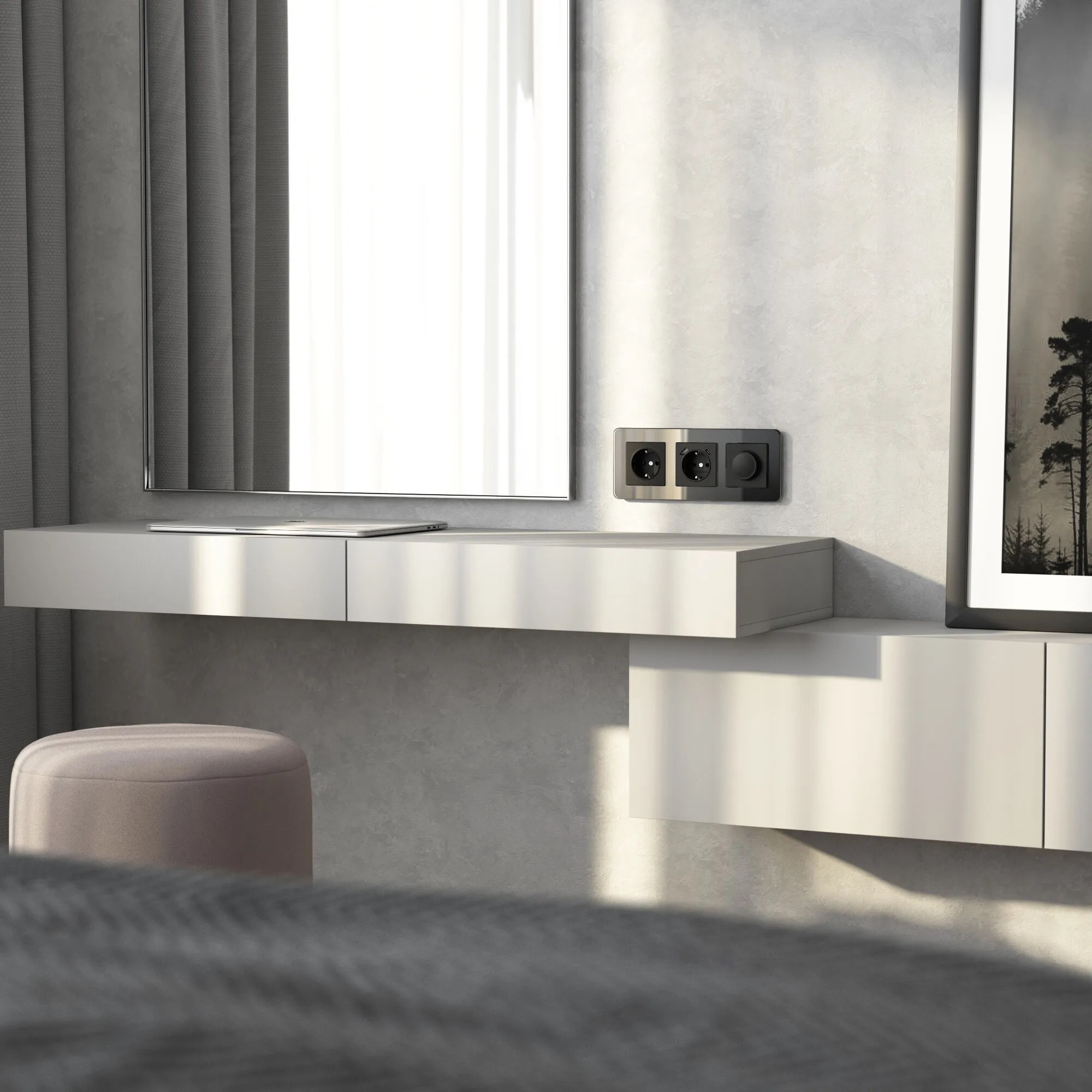 💡 Совет: Выберите чёрный/латунь Baguette для выключателей у входа — это создаст эффектный акцент при включении света.